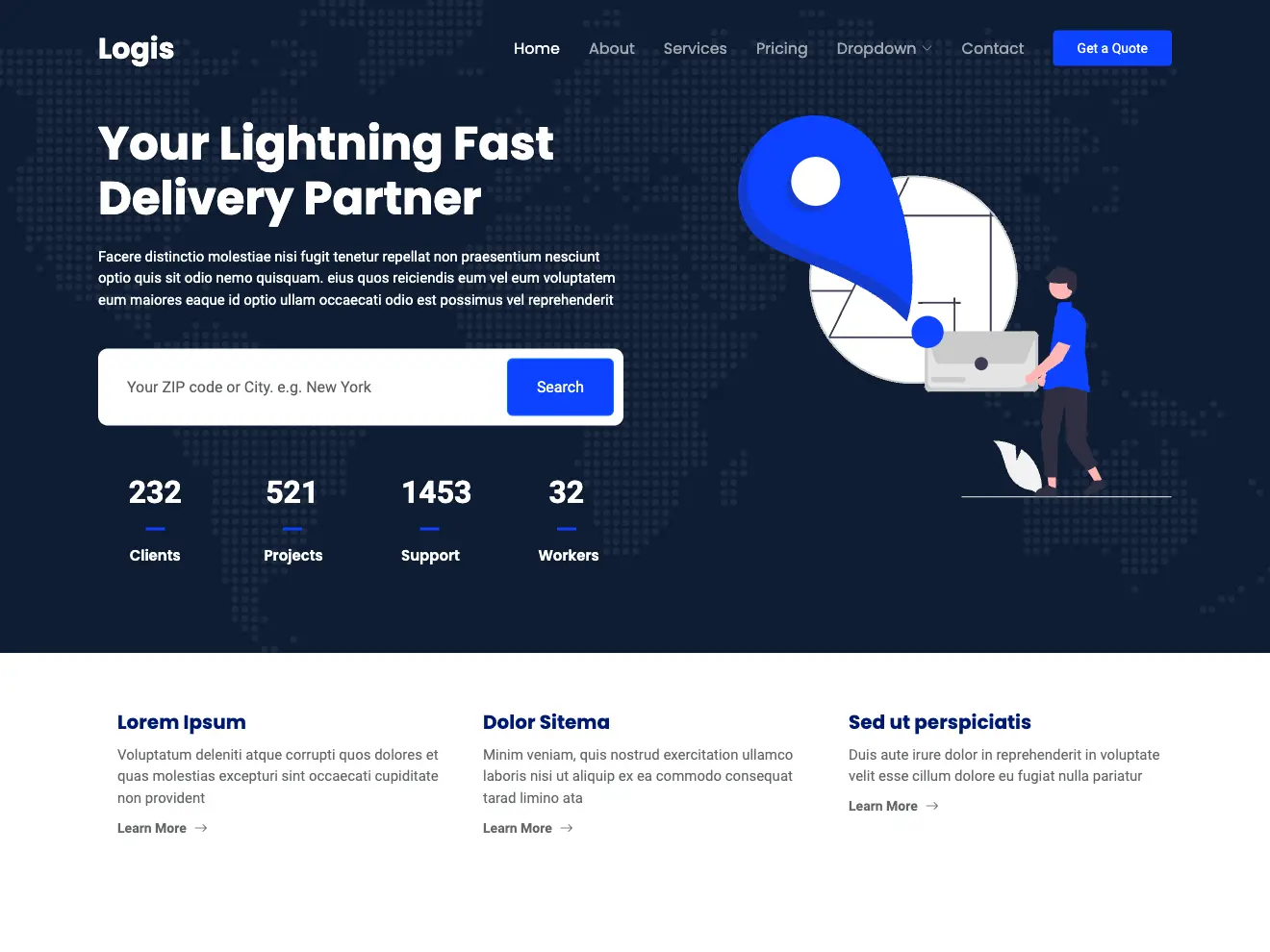 Logis is a unique and modern template built for any business operating in transportation and logistics, including cargo, shipping, home movers, logistics warehouse, storage, trucking, and packaging services. It comes with a wide range of features...